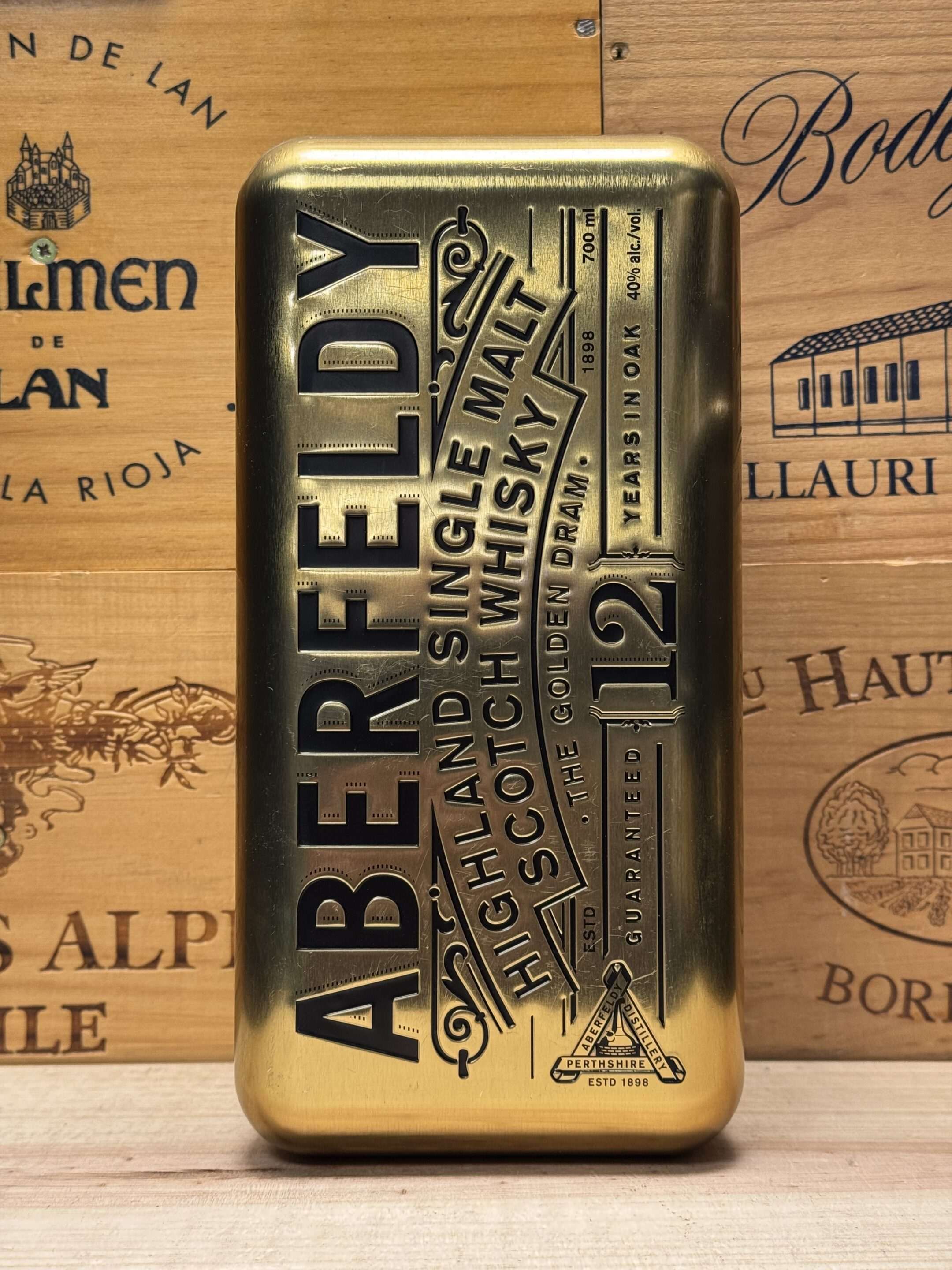 De Aberfeldy 12 Year Old in Gouden Blik is verkrijgbaar bij Slijterij Wijnhuis van den Bos. www.slijterijvandenbos.nl – hét adres voor luxe whiskygeschenken, Schotse single malts en originele relatiegeschenken met karakter.