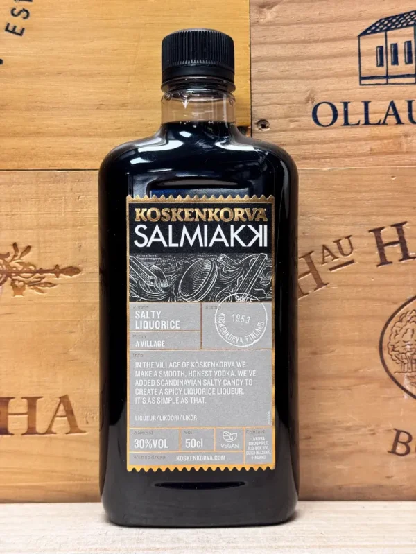 Koskenkorva Salmiakki Salty Licorice is een iconische Finse vodka likeur die de zuivere stijl van Koskenkorva vodka combineert met de uitgesproken smaak van salmiak en zoute drop. Deze likeur is diep geworteld in de Scandinavische drankcultuur, waar salmiakki bekendstaat om zijn krachtige, hartige en licht bittere karakter. Het resultaat is een intense en herkenbare likeur die duidelijk afwijkt van klassieke zoete dropvarianten.