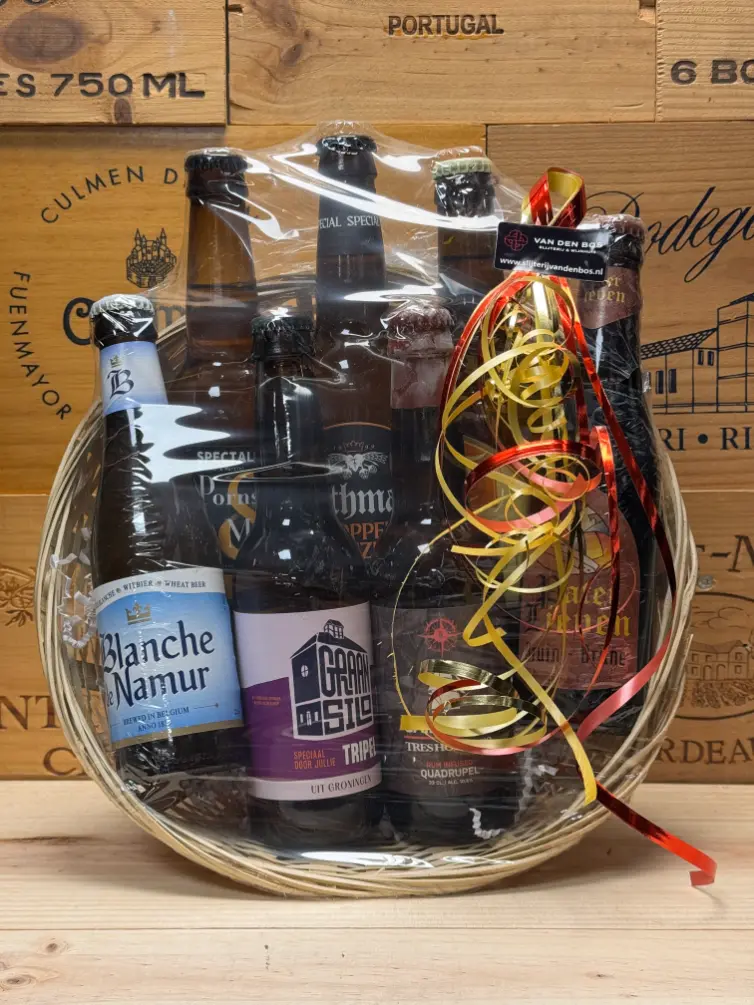 Wat dit mandje extra bijzonder maakt, is dat het niet alleen een vaste selectie bevat – bij Slijterij Wijnhuis van den Bos kun je ook zelf je biermand samenstellen! Zo geef je een persoonlijk tintje aan het cadeau en kies je precies de bieren die passen bij de smaak van degene die je wilt verrassen. Van fruitig en fris tot krachtig en kruidig: de mogelijkheden zijn eindeloos. Dit maakt elk mandje uniek en persoonlijk, en daardoor extra leuk om te geven én te krijgen.