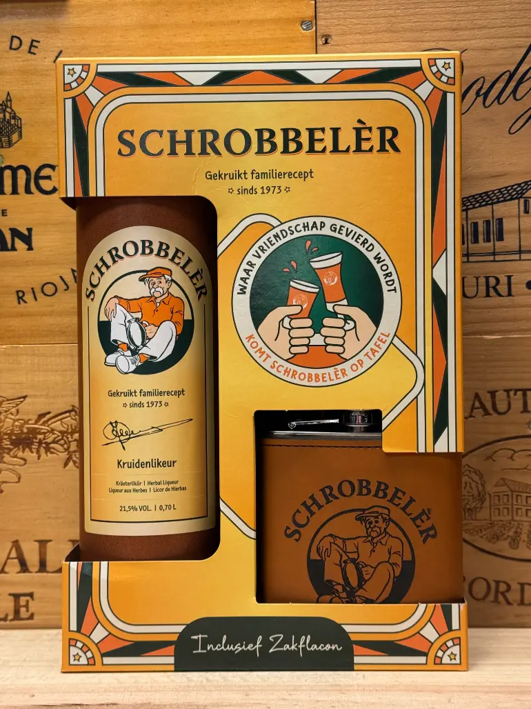 Schrobbeler Geschenkverpakking met Zakflacon is een warm, gezellig en typisch Brabants cadeaupakket dat perfect past bij feestdagen, borrelmomenten, verjaardagen en originele relatiegeschenken. Deze geschenkverpakking bevat een fles van de zachte, kruidige Schrobbeler-likeur, gecombineerd met een handige, stijlvolle zakflacon waarmee je dit iconische drankje overal mee naartoe kunt nemen. De combinatie van traditie, sfeer en praktisch gebruik maakt dit pakket een ideaal cadeau of geschenkverpakking voor iedereen die van authentieke Nederlandse likeuren houdt.