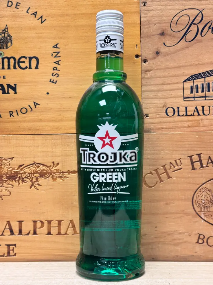 De afdronk is fris en fruitig, met aanhoudende exotische fruittonen en een lichte zoete afronding die snel en schoon wegvloeit. Trojka Green is daarmee een uitgesproken voorbeeld van een moderne gearomatiseerde vodka die inzet op frisheid, fruit en toegankelijkheid. Een duidelijke, herkenbare vodka met een levendige smaak en een eigentijdse uitstraling.